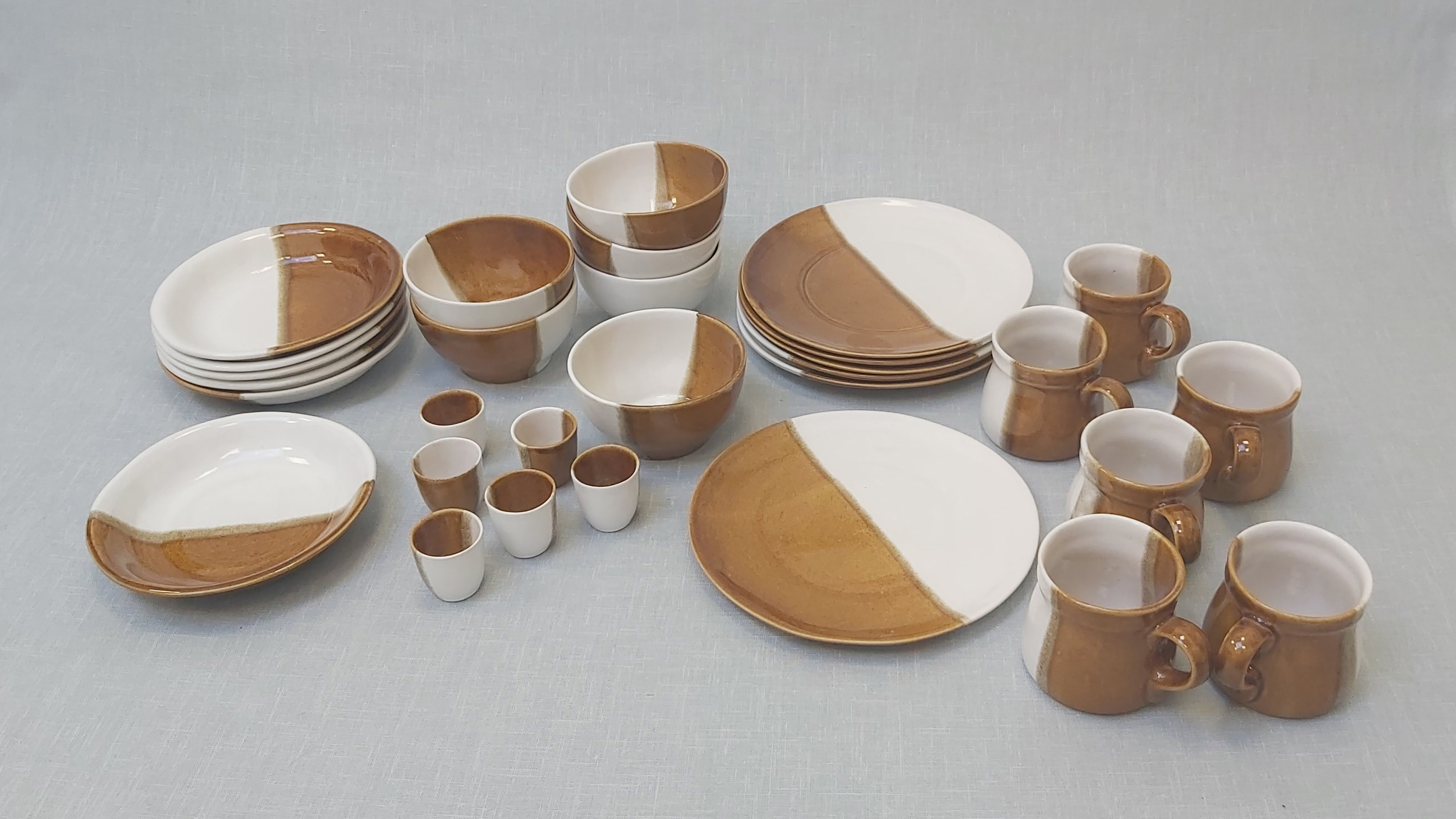 Všechny talíře, hrnky, misky a štamprle odlila a zabrousila naše kolegyně Lenka. Zakázku glazovala a dokončila kolegyně Jana.